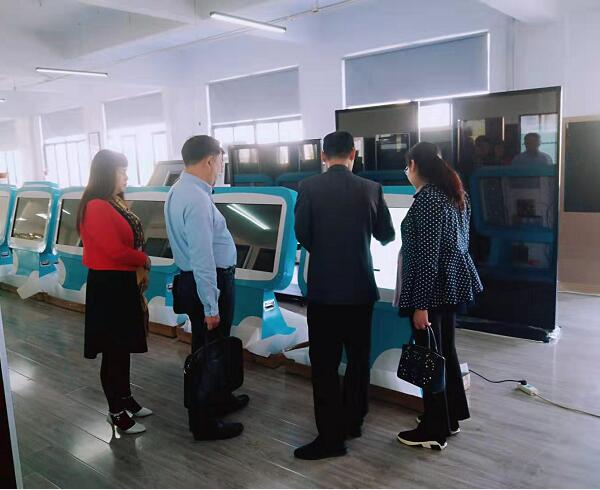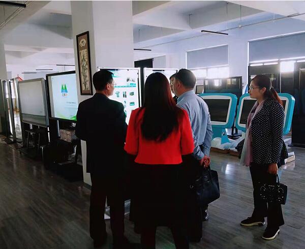 董事長張紅玲女士在給領(lǐng)導介紹全國幼兒園定制的觸控互動終端