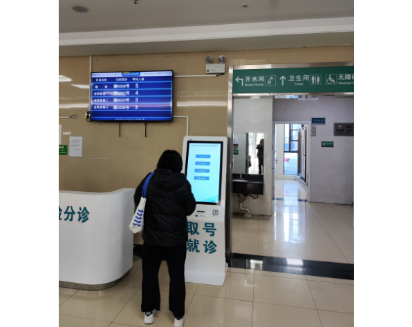 合肥經開海恒社區醫院第二套排隊叫號系統和98寸壁掛廣告機安裝調試完成